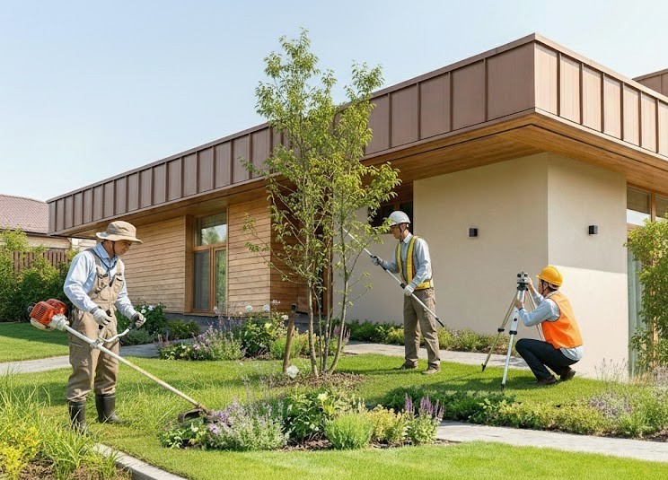 お庭の樹木伐採や草刈り、境界確定のための測量も承ります。また、不動産の売買斡旋も行っておりますので、土地探しからの家づくりもご相談ください。